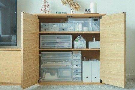 物のサイズに合った引き出しを用意し、1引き出しに1アイテムずつ収納。