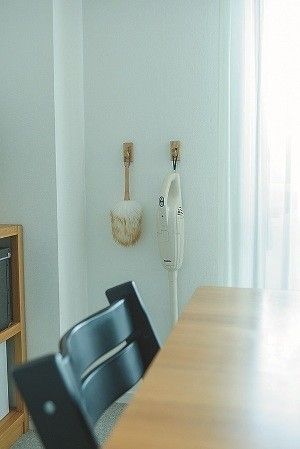 「掃除機を取りに行かずにすむよう、壁に収納しちゃいました」。子ども席のそばなので、食べこぼしにすぐ対処できてラク。食後の片づけを1つ減らせます!