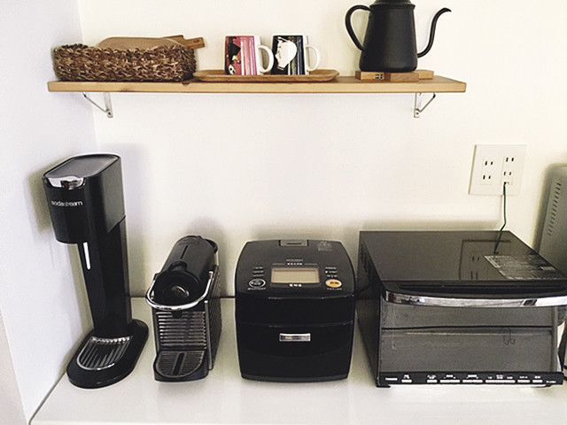 出しっ放しにしたいから、キッチンで存在感のでる家電の色は、汚れにくくスタイリッシュな「黒」で統一。買い足すときも、色さえ揃っていればすぐに馴染みます。
