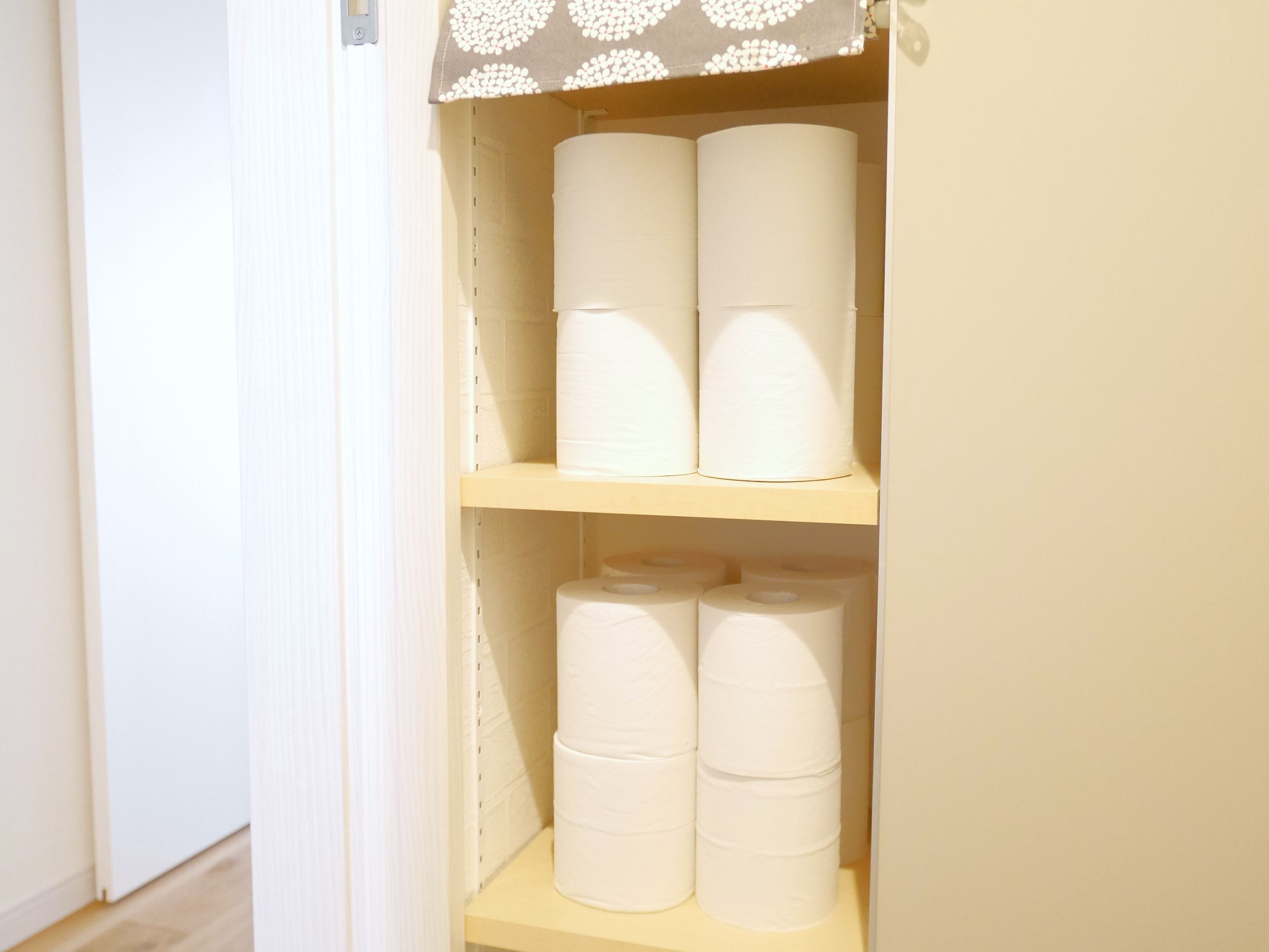 例えばトイレットペーパーなどの消耗品も、「トイレの棚に収納できる16ロールまでをもつ」など数を決めることで溢れることがありません。
