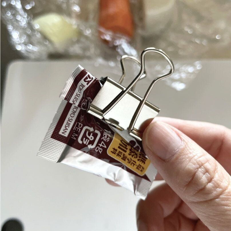 使い切りでも残ってしまう場合はダブルクリップで挟むだけ。