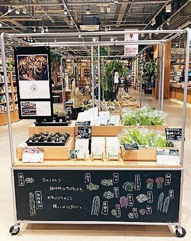 まるで朝市に行ったみたいに日用品を見て回れる陳列が楽しい。サボテンをはじめ、地域の特産品の品ぞろえは感動もの。