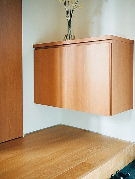 外出時に使う物や玄関の掃除に使った物などは、玄関に収納。「リビングにはリビングで使う物だけを置くように。忘れ物に気づいたときも、室内まで戻らずに済んで便利です」。