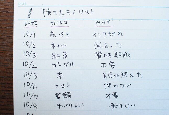 「手放した物」と「理由」をメモし「 こんなに捨てた」と実感する