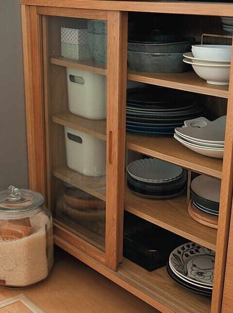 どのお皿もお気に入りだったけれど、全部は使いこなせないと考え、出番の少ない「派手な柄物」を手放すことに。奥に収納してある物も取り出しやすくなり、すべての食器をフル活用できています。