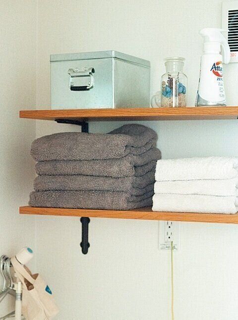 洗濯機は毎日回すから、タオルは家族の人数分にして「使う→洗う→干す→そのまま洗面所に出しっ放し収納」のサイクルに。たくさんの枚数をいちいち引き出しに収納するよりも、ずっとラク!