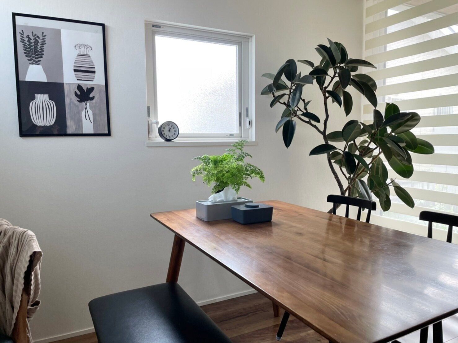 たとえば、自分の好きなインテリアを置いたり植物を飾ってみると、きれいに過ごしたいという意識も高まります。ご飯を食べる場所のダイニングテーブルの上は、いつもスッキリしておくと気持ちがいいです。