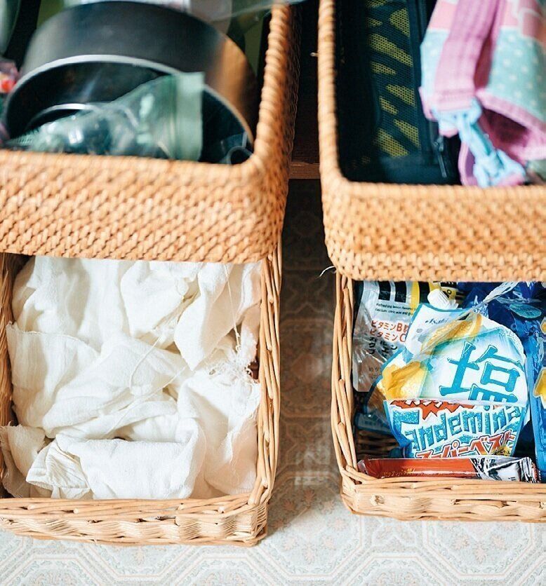 ふたを取るのが手間、ふたをするのも面倒、中に何が入っているか分かりにくい。だから、ふたはしません。「入っている物が丸見えなくらいがいいんです!」。