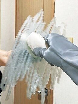せっけんを塗ると鏡の表面に膜ができ、曇り止めにもなります。