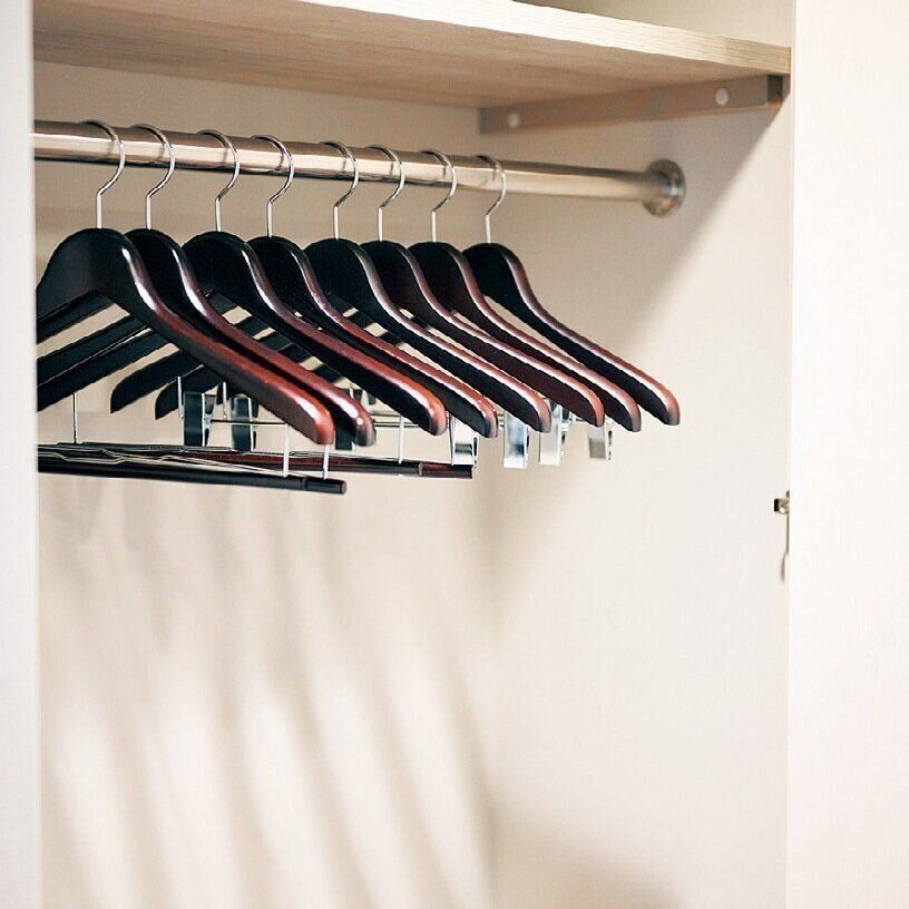 ハンガーの向きをそろえたら、見やすく&使いやすくなった!服と服の間隔を均等に空けたら、さらに見やすい!