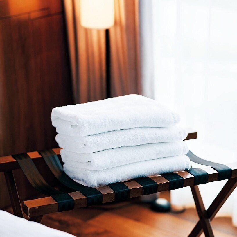 雑然と掛けたり置いたりしがちなハンガーや冊子は、向きや角をそろえて並べるだけできちんと見えるもの。ティーバッグは、見やすく取りやすいように、少しずつずらしてセット。「タオルは左右の端を内側に折り込み、端を後ろにして重ねると美しく見えます」(飯田さん)。