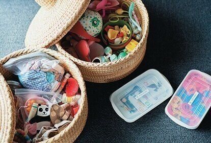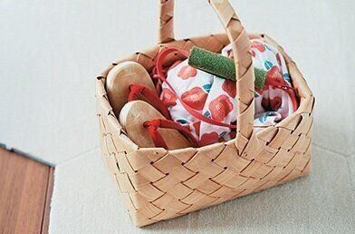 毎日遊ぶ旬なおもちゃは、1つのかごに。持ち手付きならすぐ手に取って持ち運べて、片づけもラク。