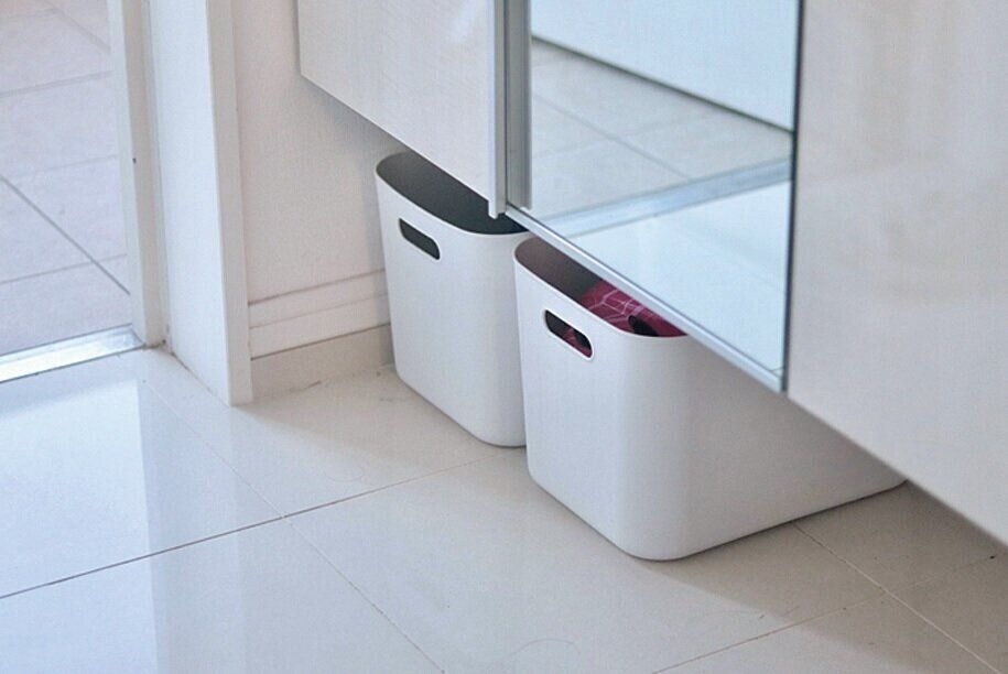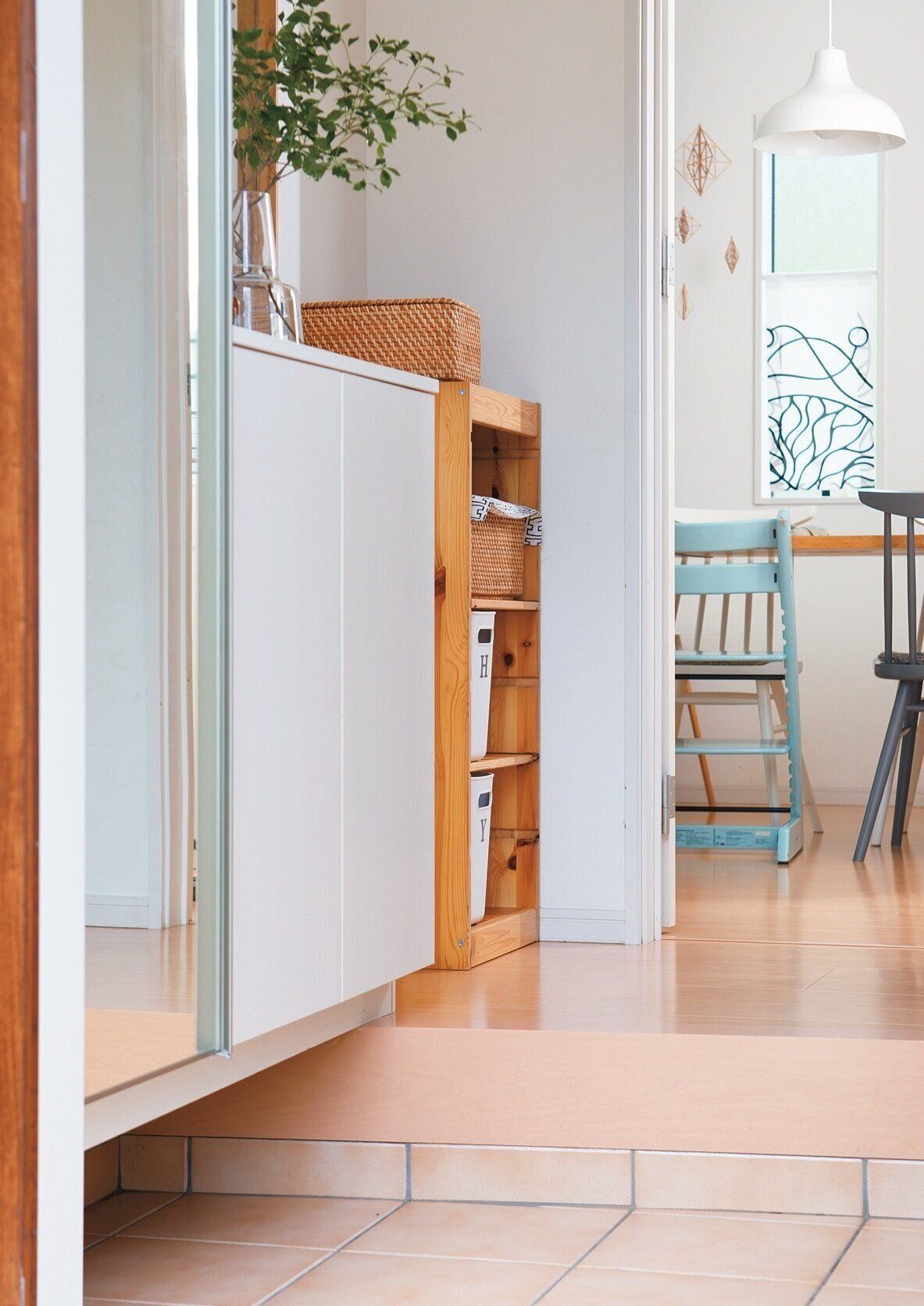 靴箱下のデッドスペースに、ボックスをIN。縄跳びやボールなどの雑多な物も、帰宅後すぐに子どもが自分でポイッとしまえていい!