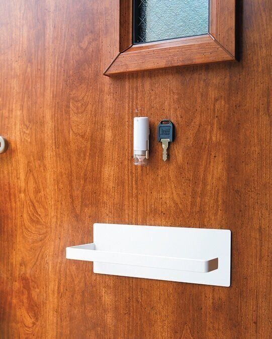100円ショップの小さな磁石を鍵や印鑑にマステなどで貼り、玄関ドアにペタリ。外出時や宅配が来たとき、慌てずにすむ!