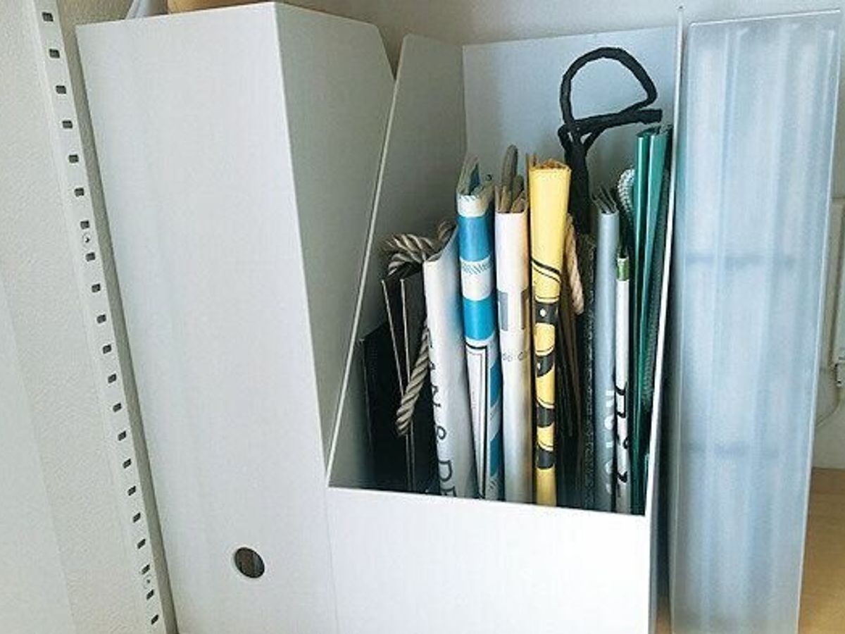 どんどん増えるので、器を決めて「入らなくなったら処分」をルールに。大きな紙袋に収納している人が多いが、パンパンになりがちなのでNG。ファイルボックスなどのハードケースに入れれば、量がキープしやすい!
