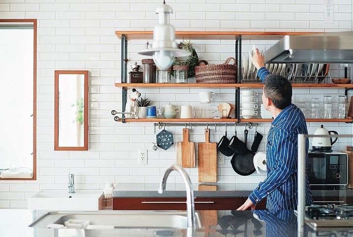 物が少なく、何がどこにあるか一目瞭然のキッチン。「サクサク片づくのが気持ちいい!」と夫が積極的に食器を片づけたり、食品の在庫が足りなくなると買っておいてくれるようになりました。