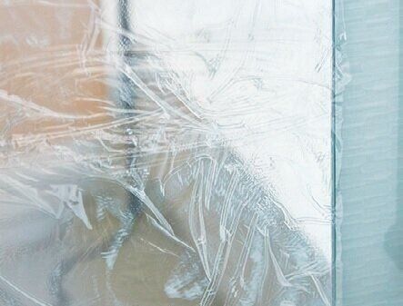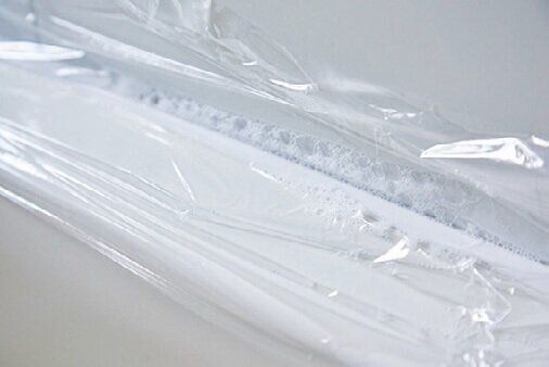 スプレーした箇所にラップを貼り、表示どおりに時間をおく。放置後にラップをはがし、シャワーで洗い流す。