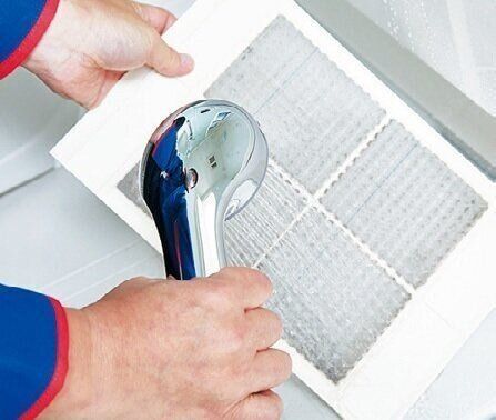 フィルターがあればはずし、汚れの付着面を下にしてシャワーをかけて落とす。残った汚れはアルカリ電解水をかけて古歯ブラシでこすり洗いし、水けを拭いて戻す。