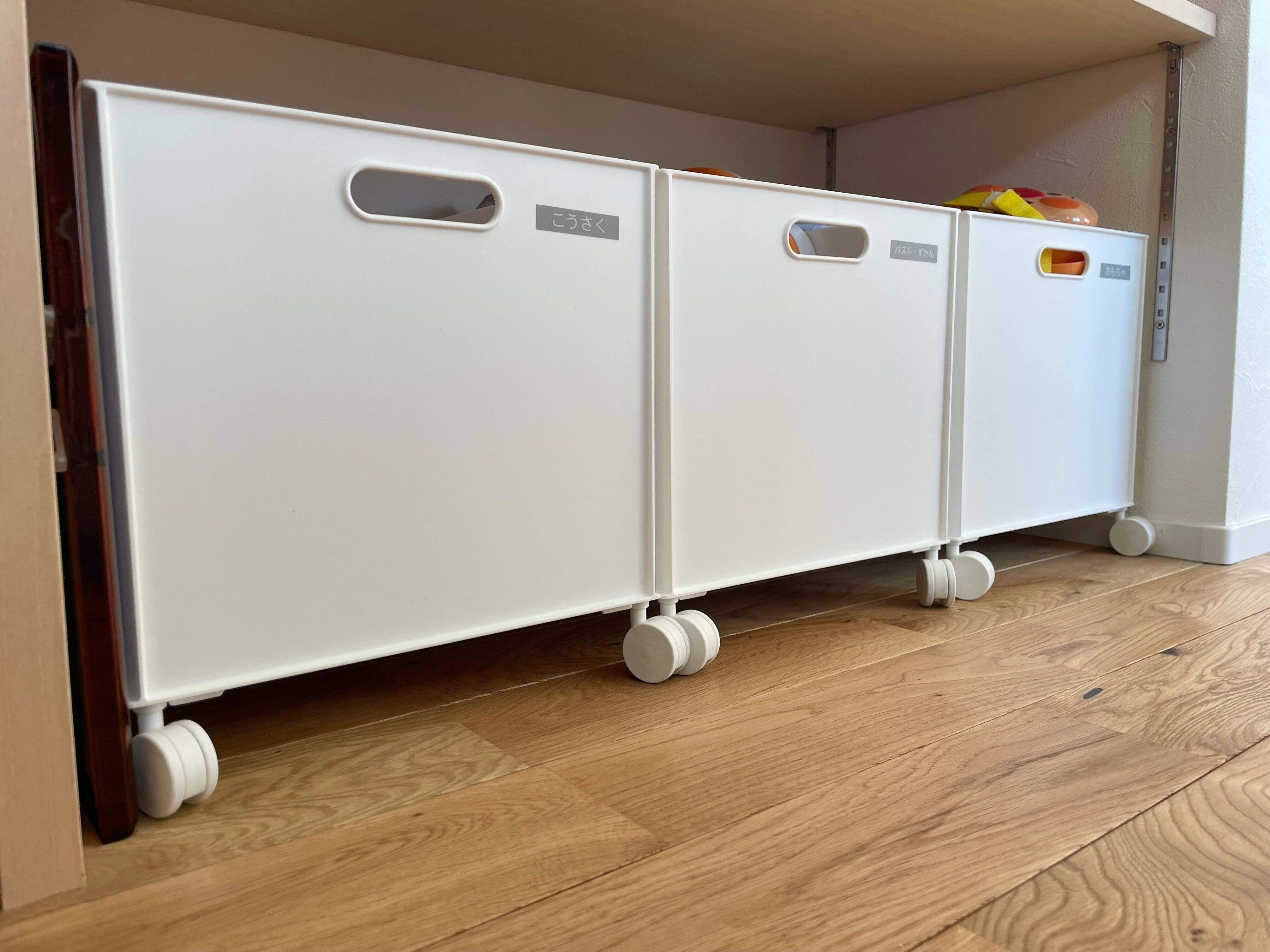 レギュラーサイズのボックスには、キャスターを取り付けられます。キャスターを付けたボックスにおもちゃを収納すると、小さなお子様もおもちゃの出し入れがしやすくなりますよ。