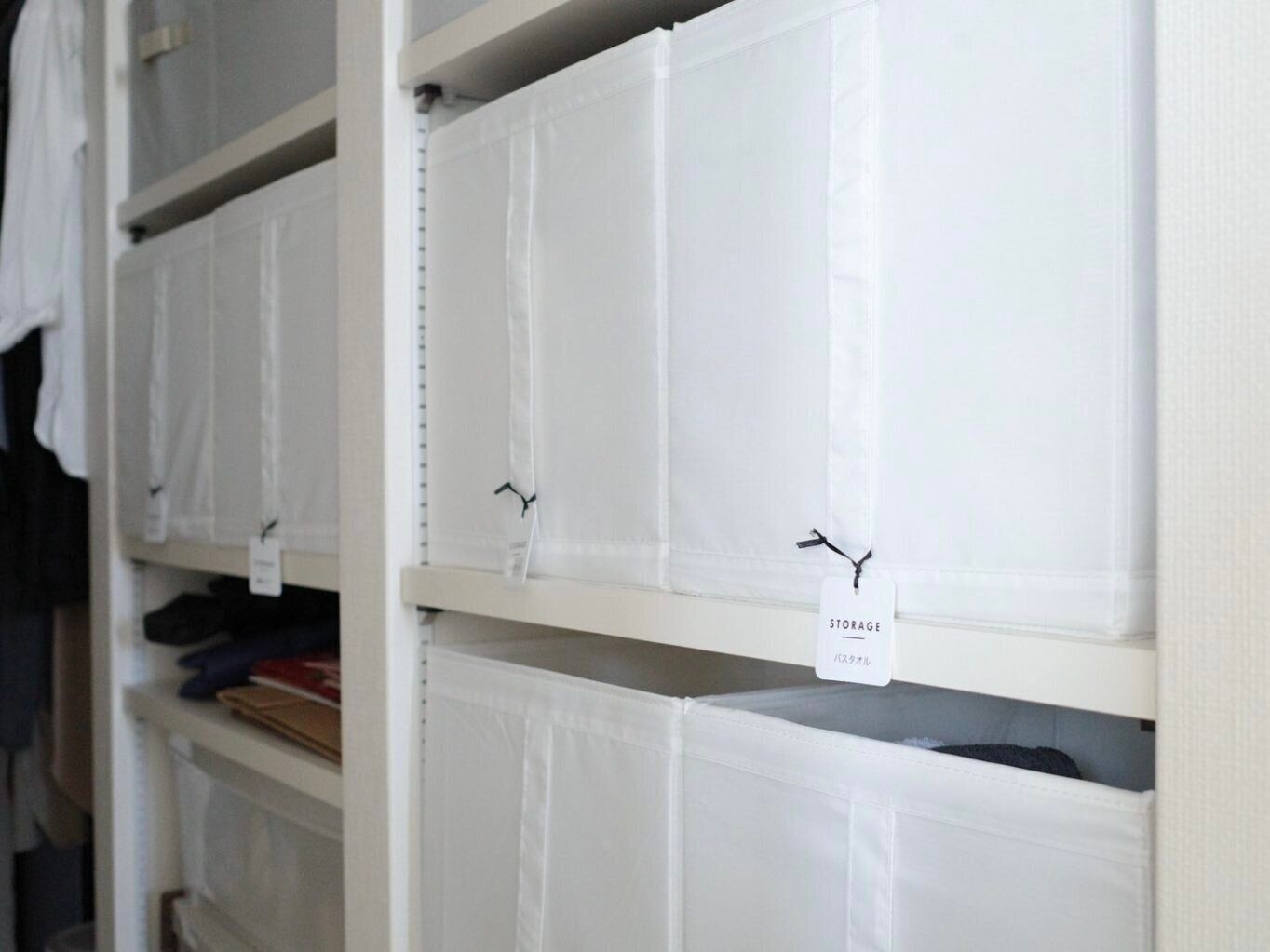 デザインもとてもシンプルで、収納スペースも綺麗に整います。取っ手も付いており、クローゼットの枕棚上でも取り出しやすいアイテムです。