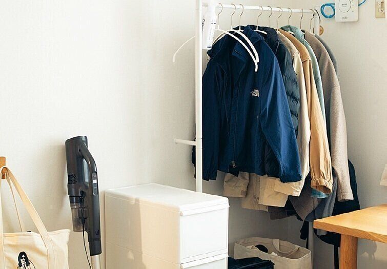 上着やコートは玄関近くのラックに掛けてリビングに持ち込ませない