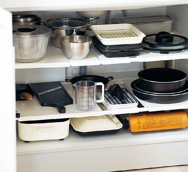 シンク下には「tower」の伸縮シンク下ラックを導入してスッキリと。
