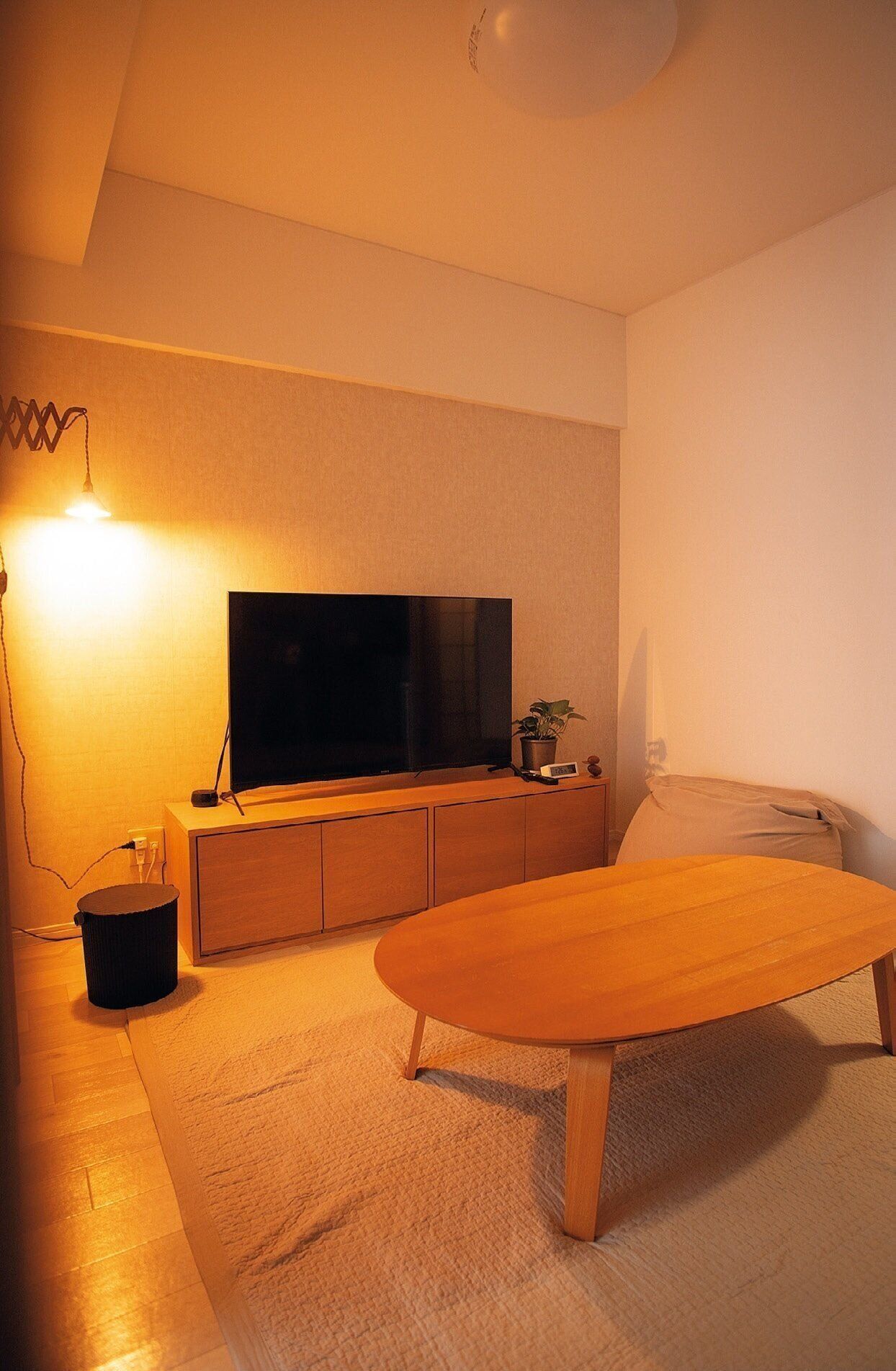 特にリビングは家族みんなの場所だから、私物の置きっ放しは禁止。テーブルと床に物がないだけで気持ちがいい!