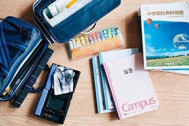 春休みや夏休みには、もう使わない教科書やノートなどを処分。絵の具セットなどは足りないものを確認して買い足し。「小3までは親子で、小4からは子ども1人で整理しています」。