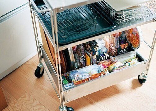 おやつはキッチンワゴンの下段にそのまま放り込み