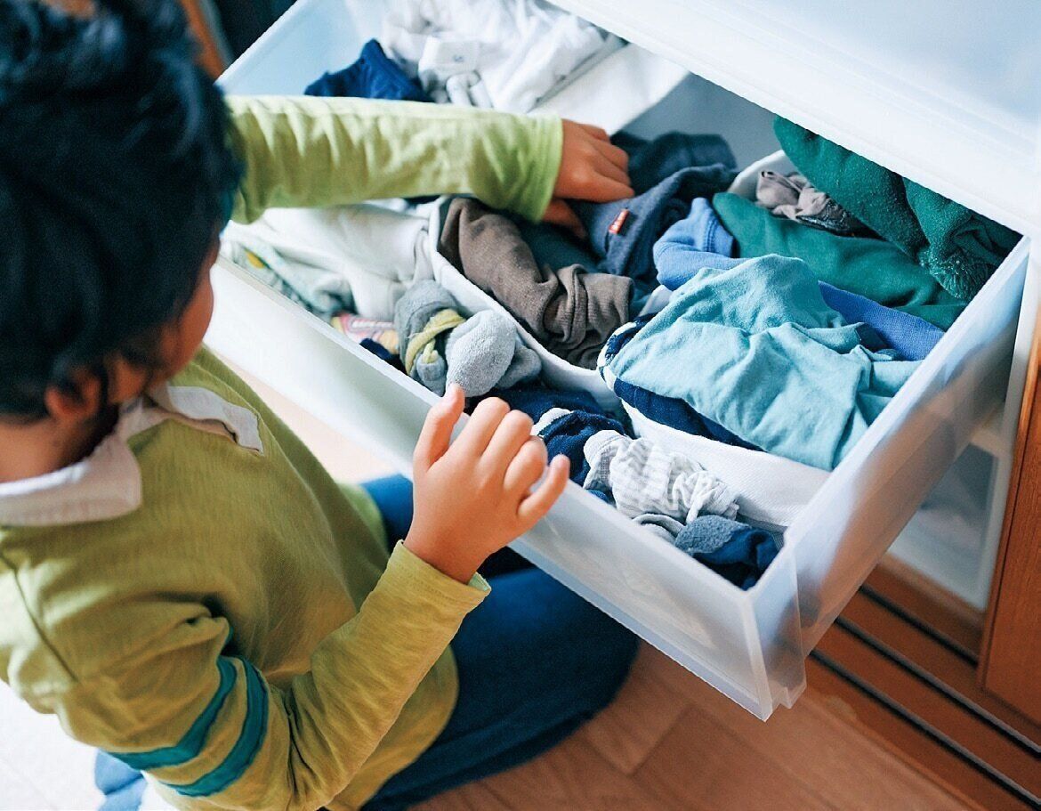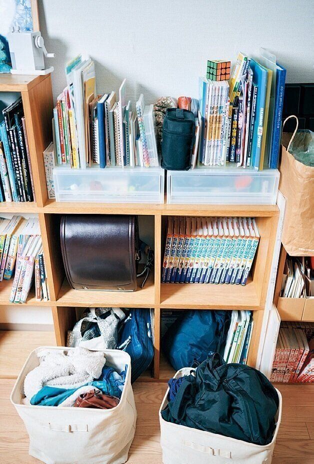 「小学生になると交友関係が広がり、外出グッズや友達の手紙、財布など私物が増えます。小1の夏休みに子ども部屋に私物をしまう引き出しやBOXを用意。ランドセルや学校教材とともに自分で整理させます」。