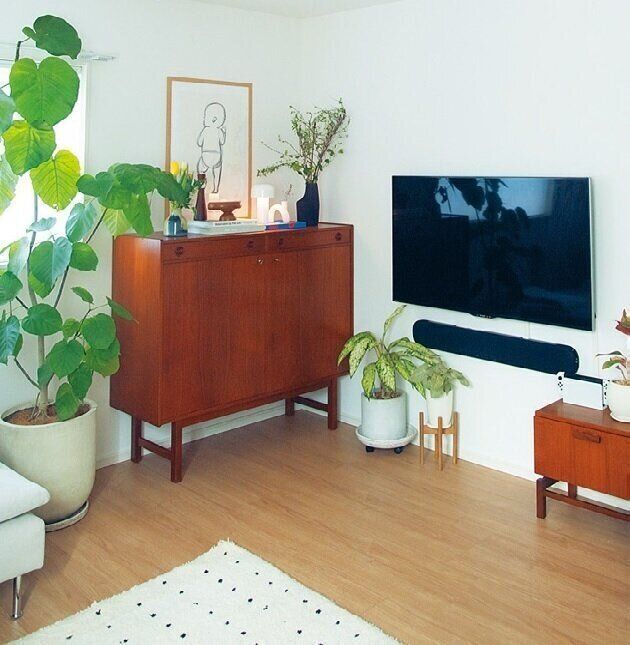 「床に置かなければ、掃除もラクだし部屋が広く見えます。TVの壁づけにはクラウドファンディングで購入した『WALL TV UNIT』を使用。少ないピンだけで設置できるので賃貸でも◎」。
