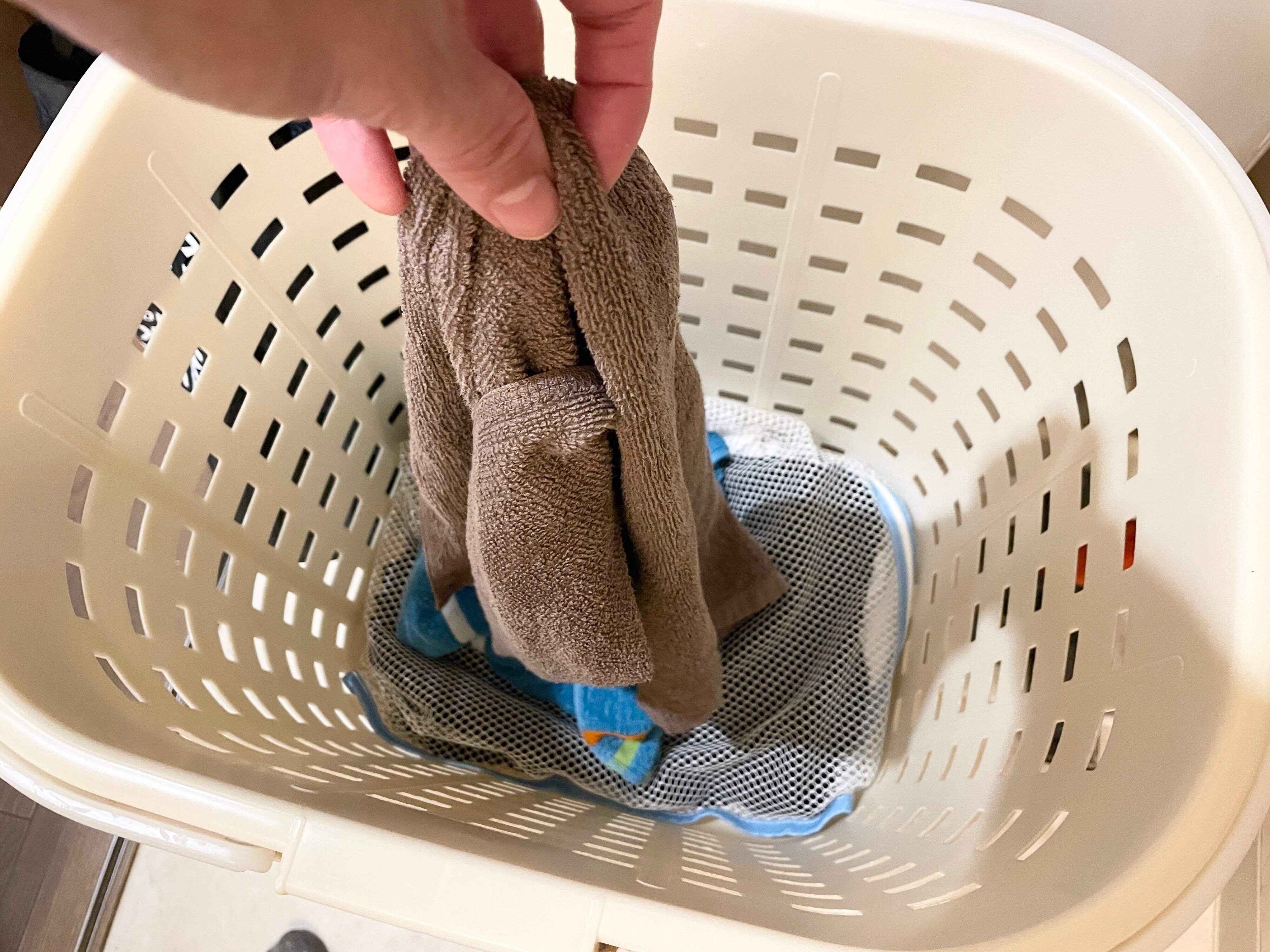ただ行って帰ってくるのではなく、洗濯するものを持って行きましょう。たとえば、びしょびしょになったキッチンの手拭きタオルとか、バッグに入れていたハンカチとか、子どもが脱いだ靴下とか。