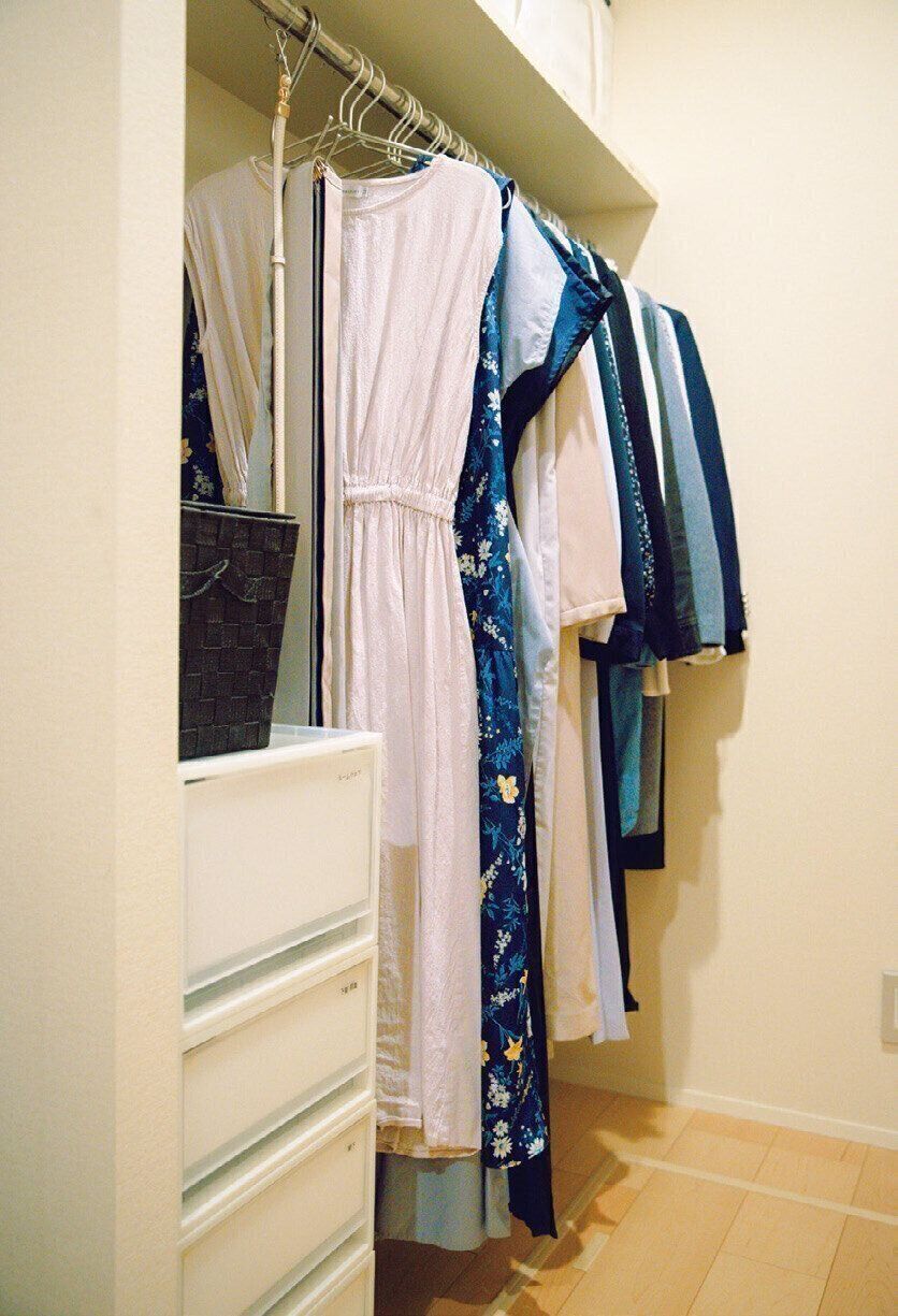 今持っている服は、ワンピース15着と礼服、スポーツウエア1組のみ。「ワンピースなら組み合わせを考えなくていいし、家でもエレガントなワンピを着ることで所作まで丁寧になりました」。