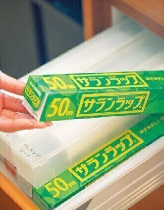 残量が分かりづらいラップは、いきなり「あ、ラップがもうない!」と慌てないよう、下段にもう1本常備しておく。下段の1本を使い始めたら、ストックを買うのを忘れずに。