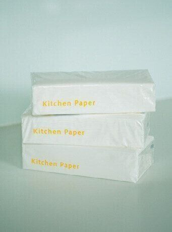 ロール状より四角いパッケージのキッチンペーパーの方が、安定感があって置きやすい。洗面所では手拭きとして、キッチンでは調理や台拭きに使用。