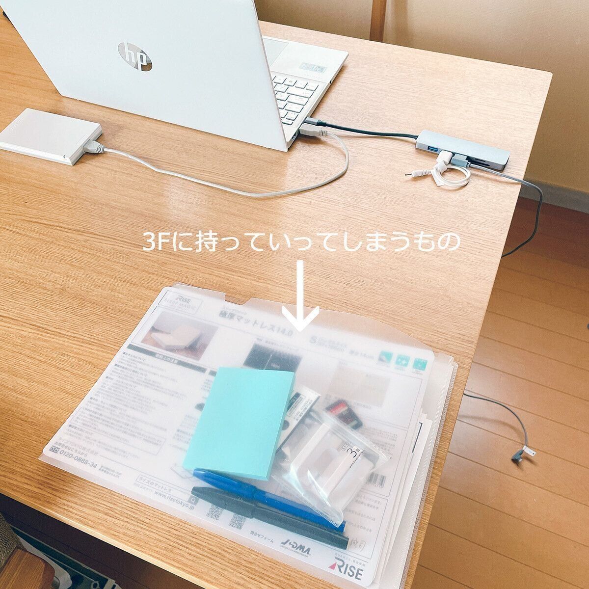 リビングで使って、3階にしまいたいものはまとめておきます。