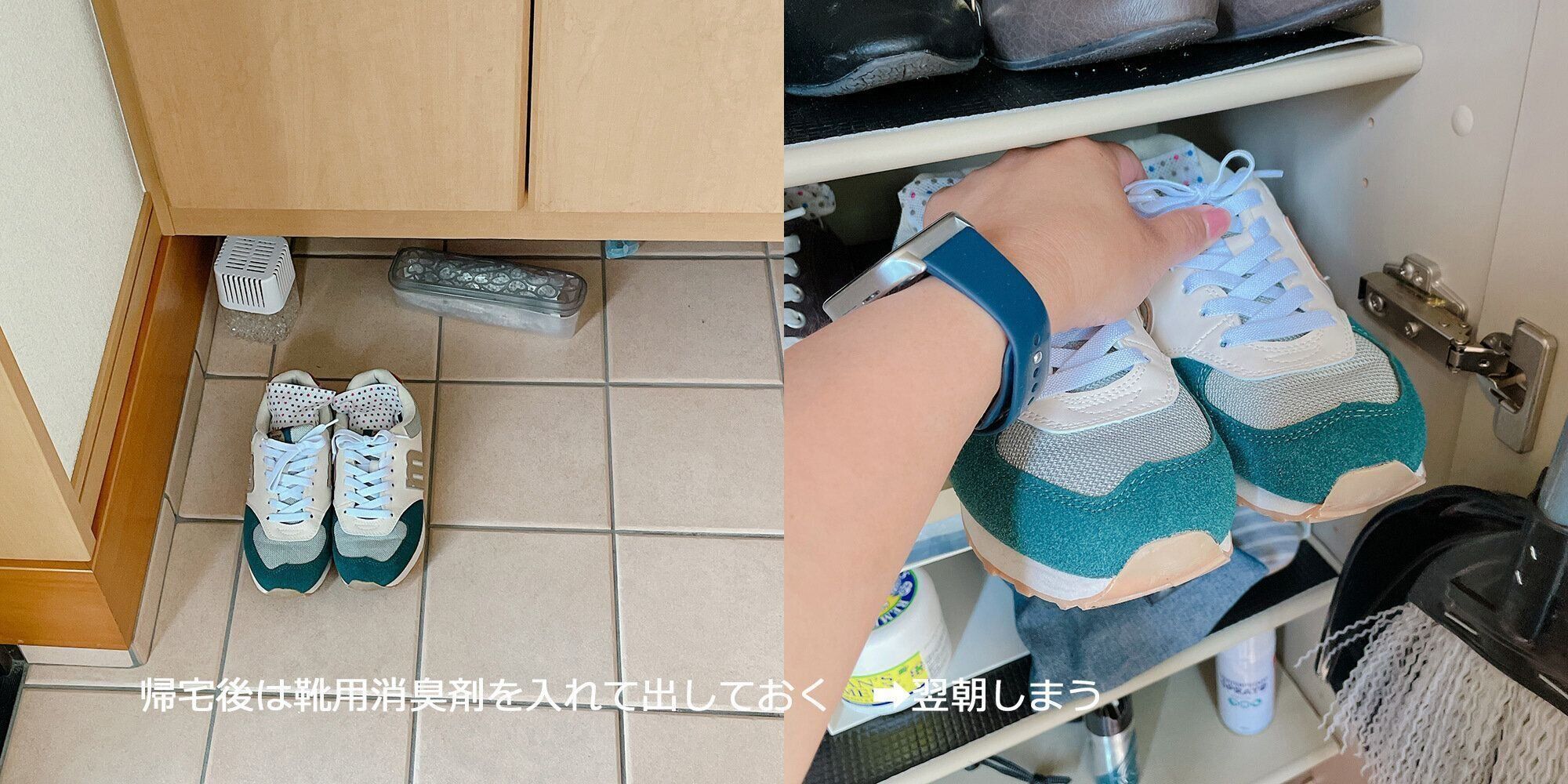 朝のゴミ出しや出勤時に玄関に行ったら、前日履いていた靴をシューズボックスにしまいます。