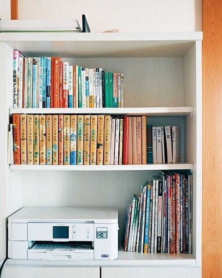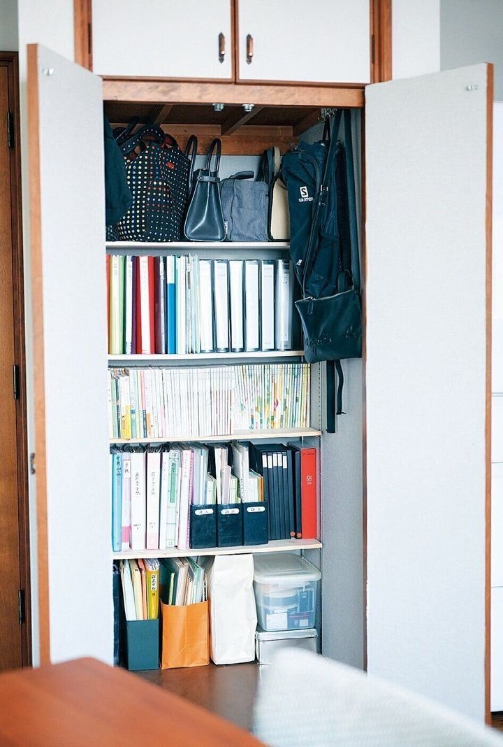 収納の枠を決めると「もうこれ以上入らない」のが一目瞭然で、それが中身を見直すタイミングに。「夫も『入らないなら』と大量の古本を手放してくれました」。
