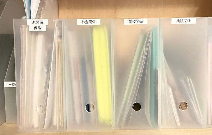 中に何が入っているかを書いて貼ったり、透けて見えるようにしたり「見える化」しておけば、忘れても大丈夫!「あれどこ?」と聞かれることもなくなりますよ。