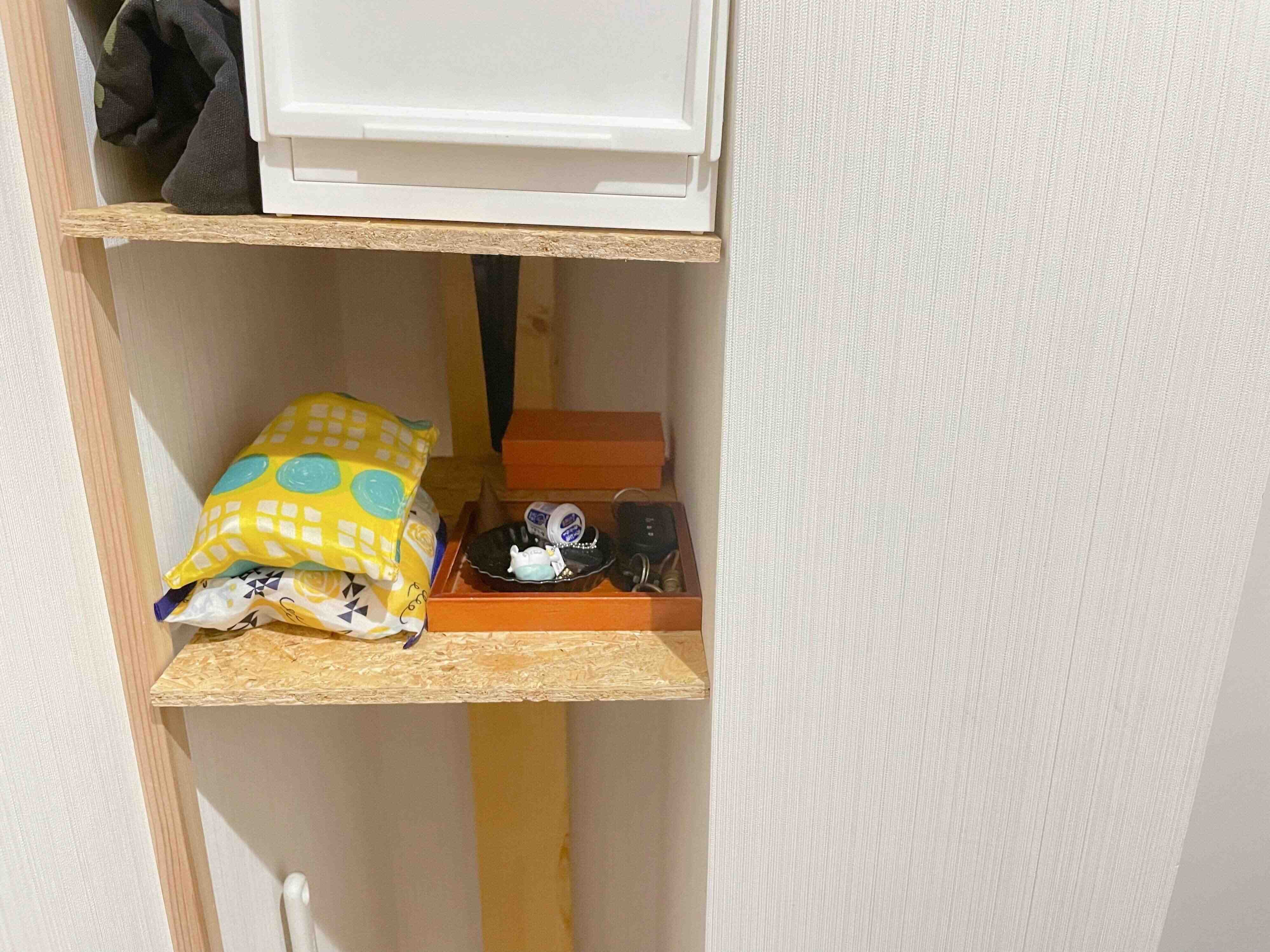 こちらも玄関内に設置しておけば、身だしなみセットを取るタイミングで忘れずに取ることができますね。