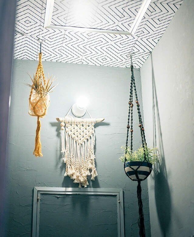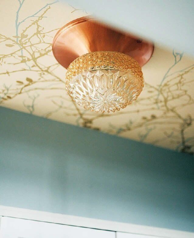 「トイレの壁や天井は清潔感のある白が王道だけど、私が天井用に選んで張り替えたのは個性的な柄。自分で張るのは大変だったけど大満足」。