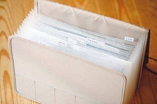 書類は“なじませカラー”のケースに収めて出し入れしやすく