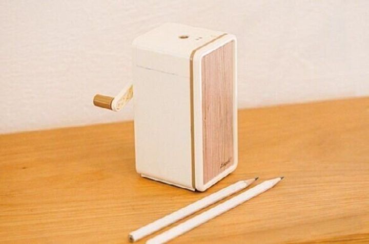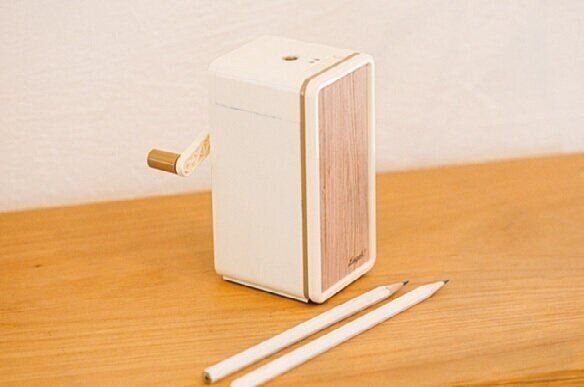 たまたま雑貨屋で見つけて一目ぼれし、購入した鉛筆削り。「ベージュの木目調だから、棚に置きっ放しでも違和感がないし、意外と使い勝手もいいんです」。