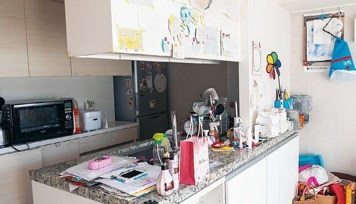 夫(46歳)と長女(9歳)、二女(4歳)と暮らす。共働きで物を片づける暇がなく、その場しのぎで収納に詰め込む暮らしだった。