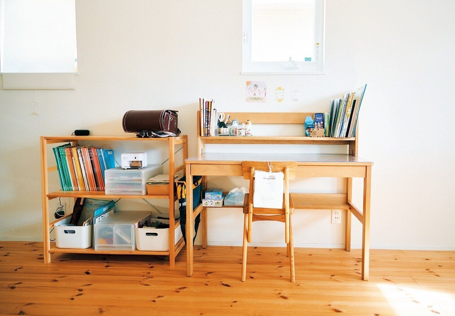 二女のデスクまわりはいつもスッキリ。「片づいていたほうが使いやすいし、勉強もしやすいから」と本人に言われ、片づいた状態の気持ちよさが家族に浸透していることを実感。