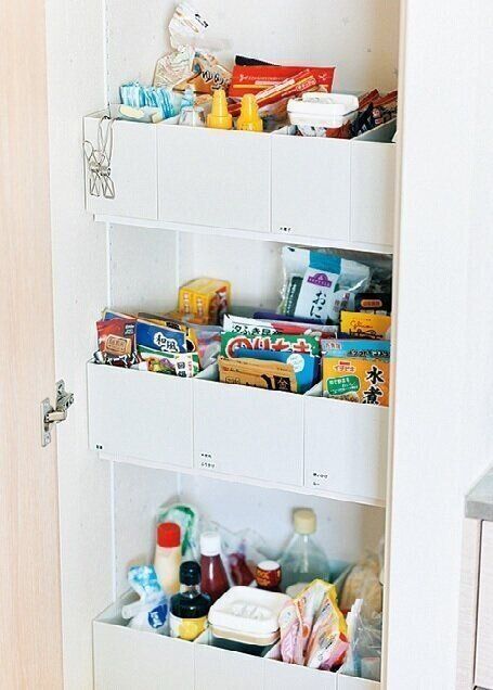 収納グッズは家中で使い回せる物を厳選。高い位置にはハンドルつきのストッカー、分類収納には高さが低めのボックス、細かい物の収納には100均の靴下整理カップを愛用しています。