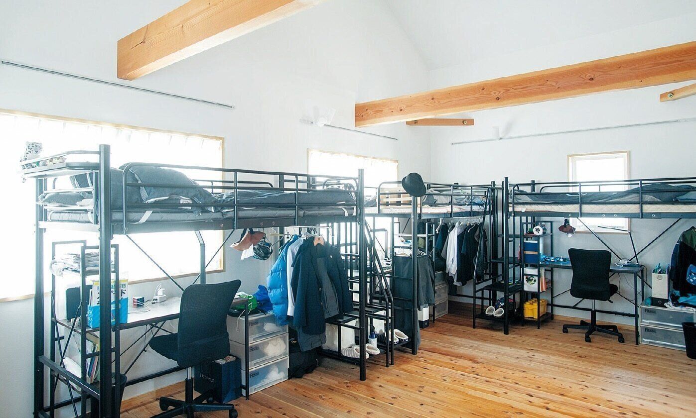 昨年家を建てた際、男子3人の部屋におそろいのロフトベッドと机を設置。「各自がどう使うかはお任せ。もしなくし物をしても、私は手を貸しません。自分で探すクセをつけることで自然と整理できるようになります」。