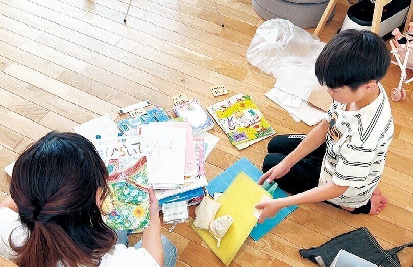 管理は本人任せですが、物が増えてくると整理整頓しづらくなるもの。「学年末などのタイミングで、持ち物を全部出して中身を見直しています。子どもの意見を聞きながら、出した物を3つに分けることで処分しやすくなります」。