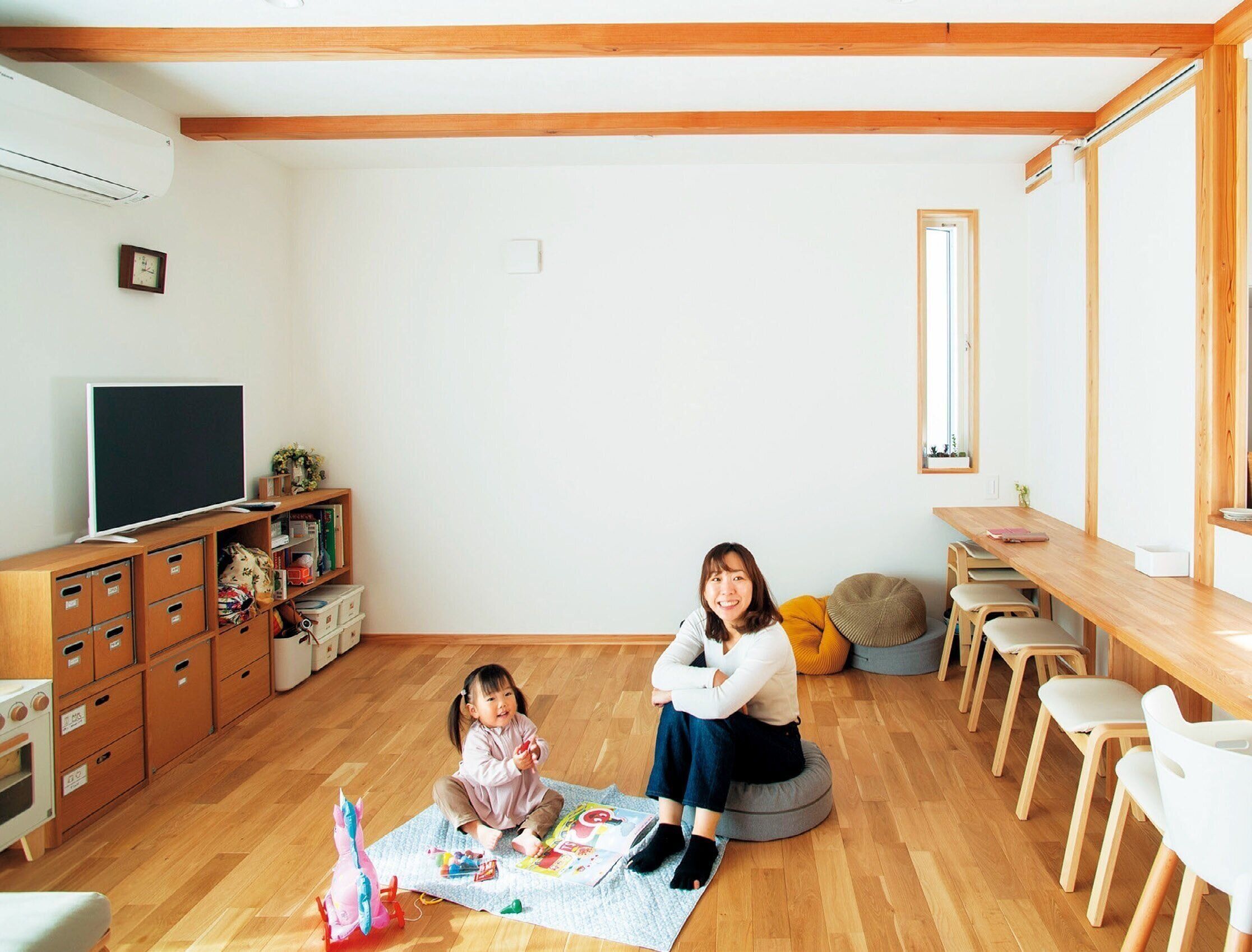 片づけしやすい環境づくりの基本は、よく使う場所の近くによく使う物の指定席をつくること。それは小さい子どもでも同じだそう。「3歳の長女は着替えや遊びもリビングですることが多いので、テレビの下に必要な物をまとめています。1歳の頃から『おもちゃはここ』というように教えていたため、今では自分で出し戻しできるように。子どもの成長に合わせ、収納の仕方や配置を少しずつ変えていくことも大事です」。