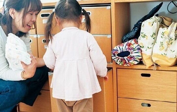 幼い子どもの物は、手が届く範囲で1枠1ジャンルに分ける